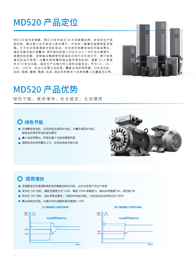 The MD520 series frequency converter is a general-purpose high-performance current vector frequency converter, mainly used to control and regulate the speed and torque of three-phase AC asynchronous motors and three-phase AC permanent magnet motors. It can be used for driving textile, papermaking, wire drawing, machine tools, packaging, food, fans, water pumps, and other automated production equipment.