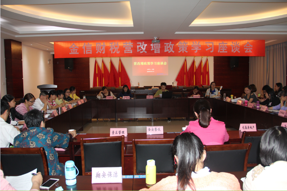 2016年5月7日下午,黃山市金信財(cái)稅代理事務(wù)所有限公司召開了營改增政策學(xué)習(xí)座談會(huì),來自歙縣多家企業(yè)負(fù)責(zé)人、財(cái)務(wù)人員及金信全體會(huì)計(jì)參加座談。