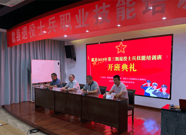9月9日,歙縣2019年度第三期退役士兵職業技能培訓期在我青創職業培訓學校隆重開班??h退役軍人事務局局長金自立、副局長潘煉等領導,青創職業培訓學校、康順駕校負責人出席開班儀式并發表講話。