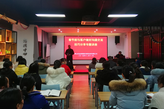 2019年12月12日,公司在一樓眾創空間召開“春節前與客戶做好溝通交流技巧分享”專題講座,全體員工50余人聆聽了公司總經理胡海鋒的精彩解說。