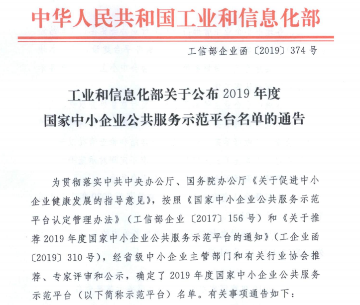 近日,國家工信部發(fā)布《關(guān)于公布2019年度國家中小企業(yè)公共服務(wù)示范平臺名單的通告》,歙縣招商投資服務(wù)中心名列其中,這是我中心繼2015、2018年被認(rèn)定為“安徽省中小企業(yè)公共服務(wù)示范平臺”稱號后,喜獲國家級殊榮。這也是我市第三家民營中介服務(wù)機構(gòu)躋身國家級服務(wù)平臺。