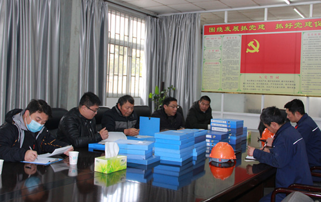 (上圖為檢查小組查看華邦公司安全生產(chǎn)檔案,并向企業(yè)反饋檢查意見。)