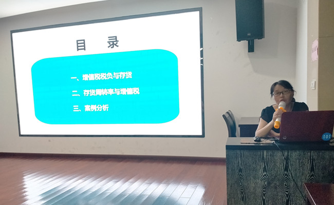 李霞娟是財稅代理部的領頭羊,也是我地資深中級會計師,從事財務代理工作多年,有著豐富的工作經驗和操作能力,她以深厚的財稅專業知識基礎得到客戶的高度認可和政府相關部門的肯定。此次分享她主要圍繞增值稅稅負與存貨,存貨周轉率與增值稅之間的關系,并結合實際案例進行詳細講解。經過李經理的詳細介紹,參與分享人員對“增值稅與存貨”之間存在的關系有了更加深入的了解,提高了對此類數據的敏感性,有助于更好的為企業提供服務。