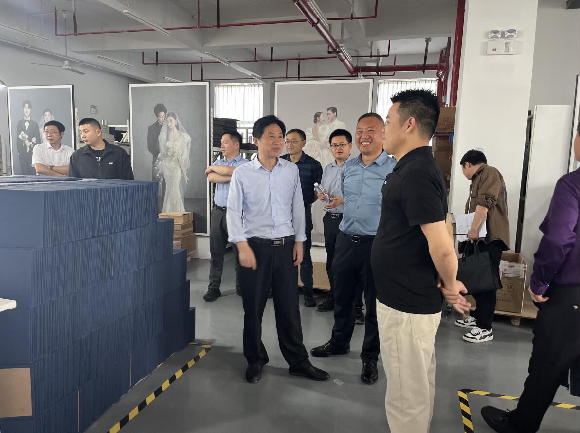 在胡海鋒的帶領下,張暉一行逐一參觀了龍工場、三只蜜蜂、善文相冊、企朋電器等多家入駐企業,與企業負責人親切交談,深入了解了各企業的運營狀況和發展需求,對企業的經營模式、創新能力及市場前景表示高度贊賞。