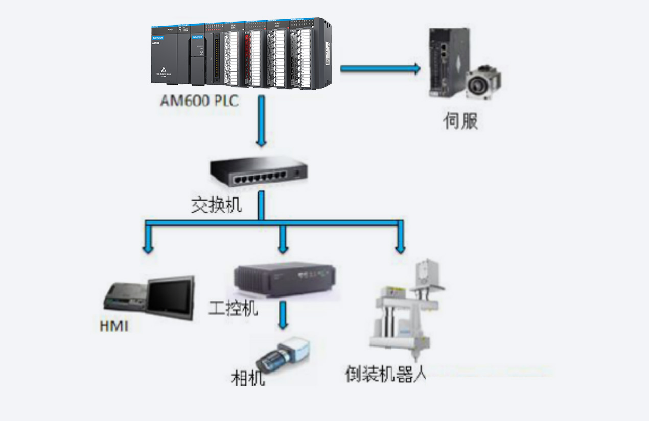 通過匯川AM600、匯川伺服與匯川機器人全套電氣主控方案配合,大大提高了單機設備的調試效率和生產效率